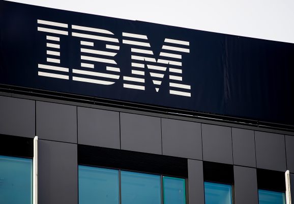 Bucharest, Romania - January 19, 2021: The IBM logo is seen on the top of the IBM Romania headquarter building, in Bucharest, Romania.